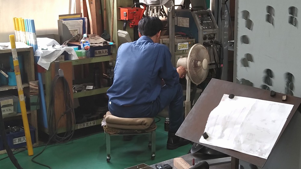 作業場所が建築板金の場合では住宅建物に実際に取り付けるのに高所に上がったりする事があるのに比べると、『板金加工』の作業のほとんどが工場内で完結します。
