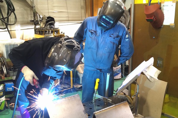 加工図面に基づいてTIG溶接、CO2溶接と、仕上げ作業を行います。